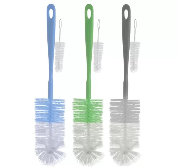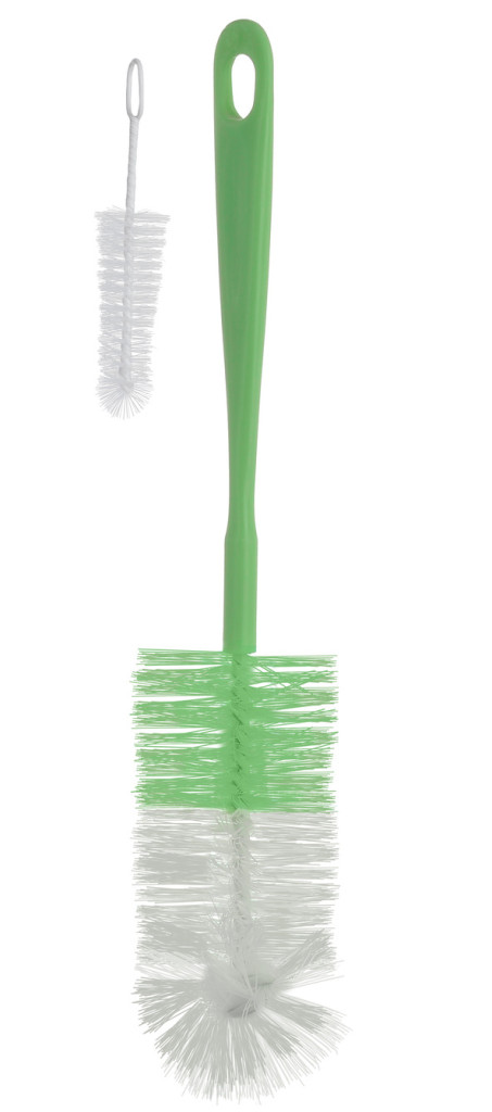 A készletben található nagyobb méretű üvegmosó kefe a cumisüveg tisztítására, a kisebb méretű az etetőcumi belső felületének tisztítására szolgál.