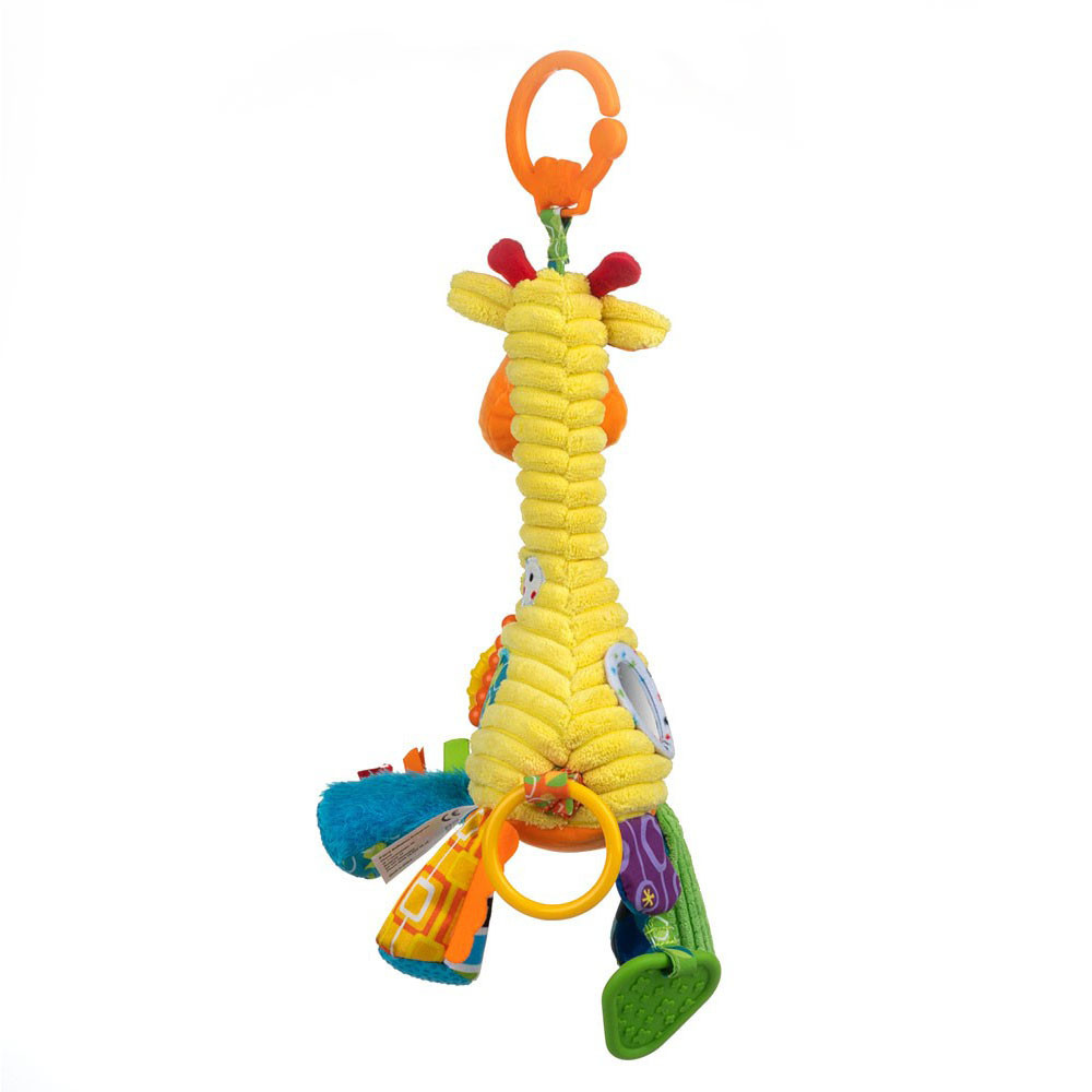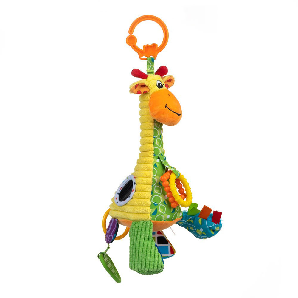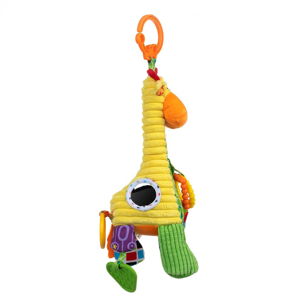 Ez a barátságos plüssjáték különböző elemekkel rendelkezik, amelyek szórakoztatják a kisgyerekeket: barátságos tükör, műanyag gyűrű, texturált négyzet és még puha rágóka is.