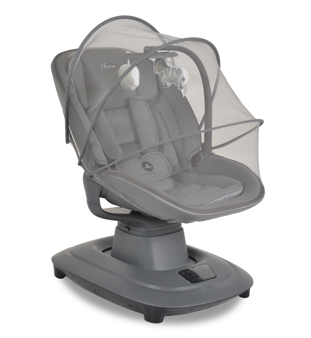 A 12 beépített dallammal és hangerő-szabályzóval, szúnyoghálóval és két plüss játékkal ellátott, levehető játékruddal a Hera nyugodt és szórakoztató környezetet biztosít a babáknak.