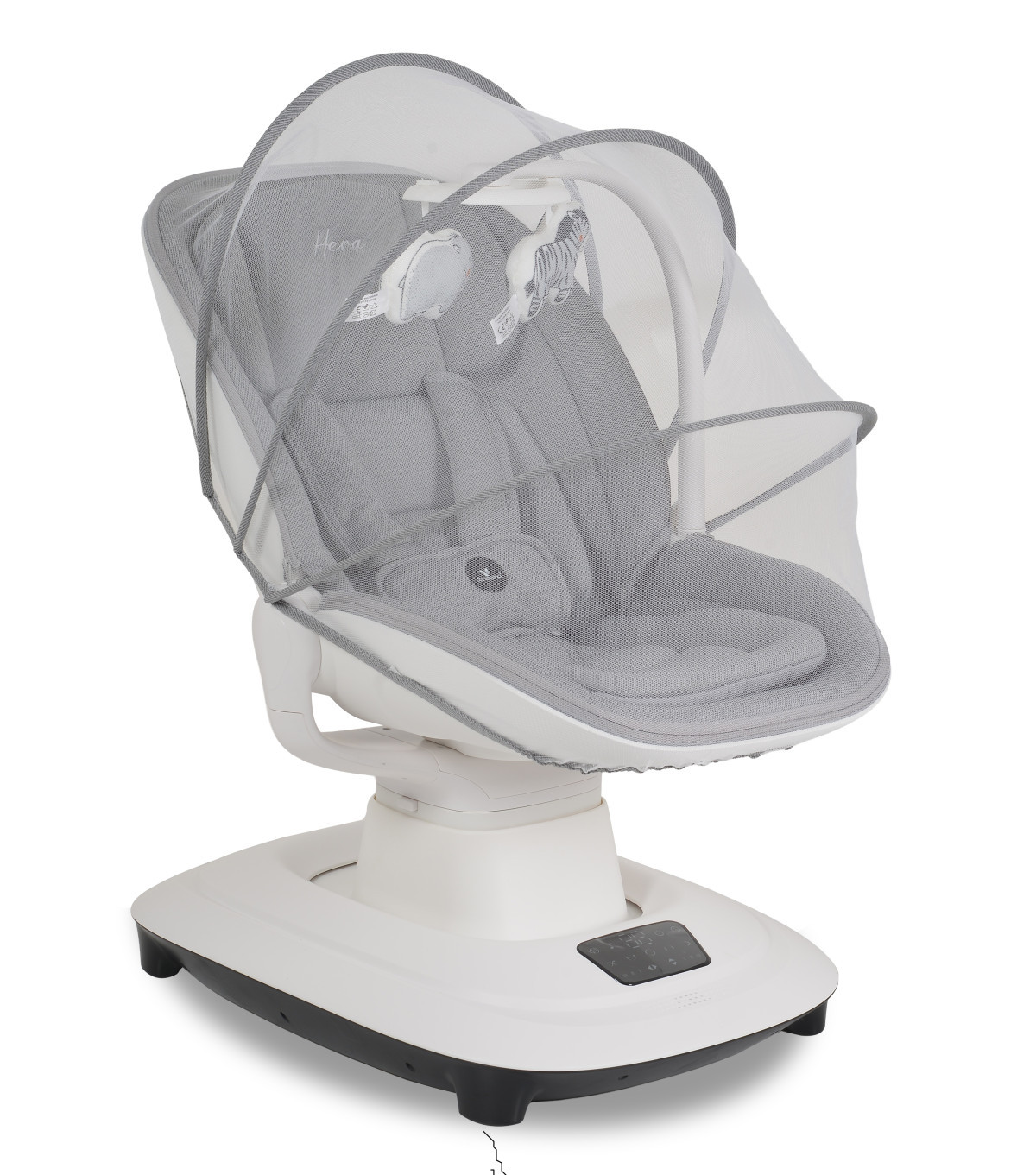 A 12 beépített dallammal és hangerő-szabályzóval, szúnyoghálóval és két plüss játékkal ellátott, levehető játékruddal a Hera nyugodt és szórakoztató környezetet biztosít a babáknak.