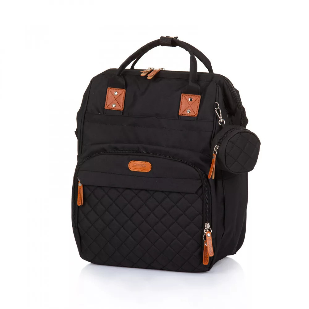 - Hátizsák, amely egy pelenkázótáska is egyben, könnyen és kényelmesen használható, a babakocsik tolókarjára univerzálisan rögzíthető.