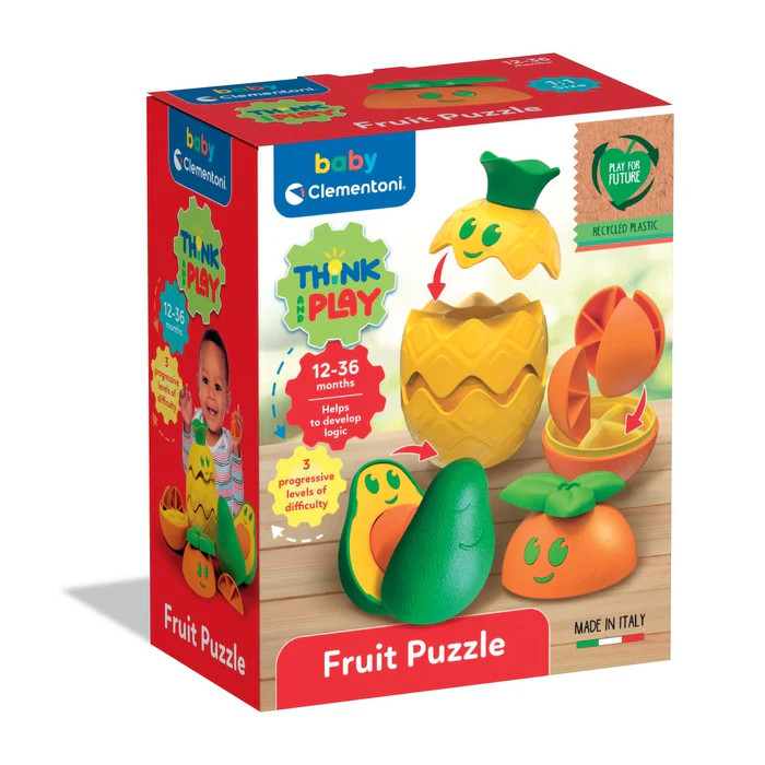 A játék újrahasznosított műanyagból készült, így nemcsak szórakoztató és tanulságos, de környezettudatos is. A háromféle gyümölcs különböző nehézségi szinteket képvisel, ezáltal fokozatos fejlődési lehetőséget nyújt a 12–36 hónapos korosztály számára. A kedves arcok és élénk színek lekötik a kicsik figyelmét, miközben észrevétlenül tanulnak és fejlődnek.