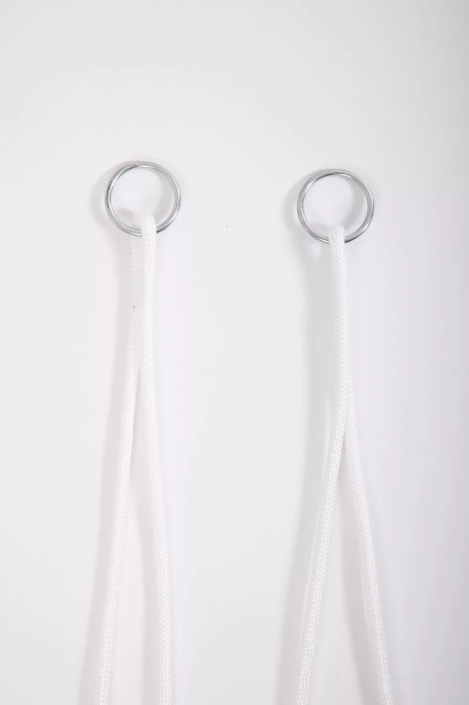 10 mm vastag, strapabíró, sima tapintású kötélzet fém karikákkal.