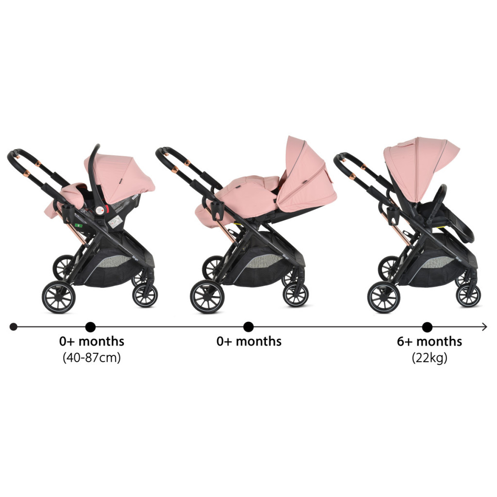Újszülött kortól 4 éves korig (22 kg-ig) alkalmas, a szetthez 40-87 cm-es autós hordozó is tartozik.
