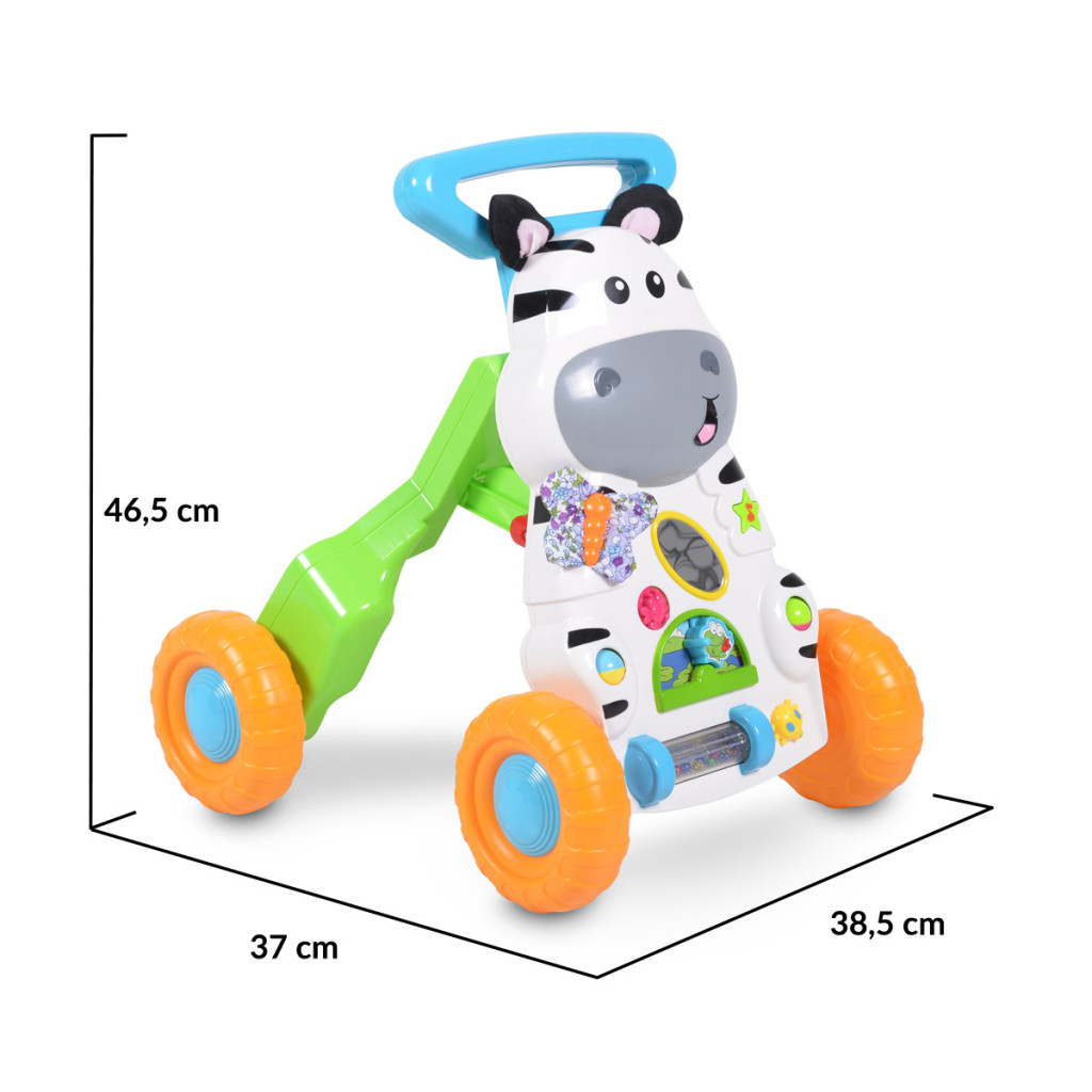 A Little Zebra zenélő járássegítő játék egy nagyszerű és nagyon funkcionális modell, amely változatos és érdekes tevékenységeket kínál a gyermek számára.
