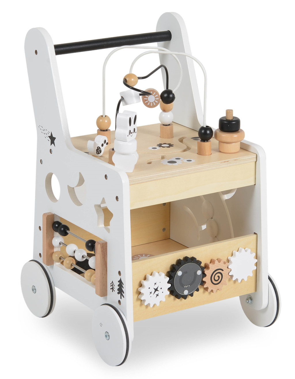 A járás közbeni stabil támasztás mellett különböző tevékenységeket is kínál, amelyek a játékidőt szórakoztatóvá és tanulássá teszik.