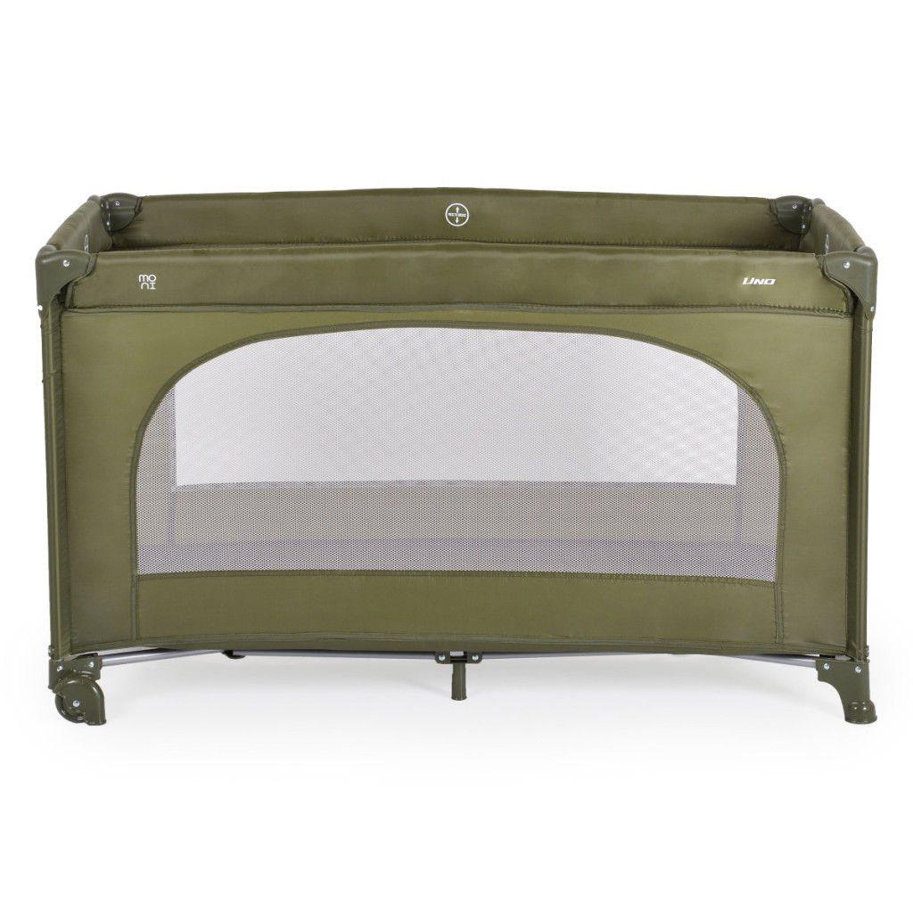 A MONI UNO összecsukható kiságy elegáns kialakítását és funkcionalitását ötvözi, hogy biztonságos és kényelmes környezetet biztosítson alváshoz és játékhoz – otthon és utazás közben egyaránt. Könnyű, összecsukható és könnyen hordozható, így ideális választás a modern szülők számára.