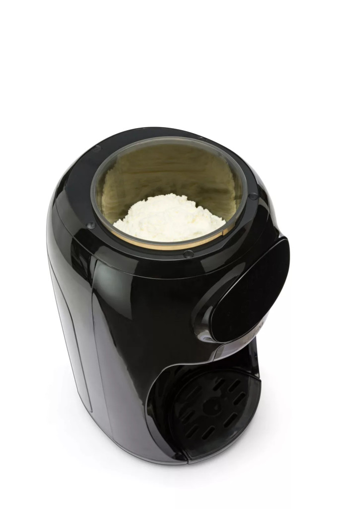 - Egyetlen gombbal melegíti és adagolja a tejport, így minden automatán történik, csak a hozzávalókat kell beletölteni a gépbe