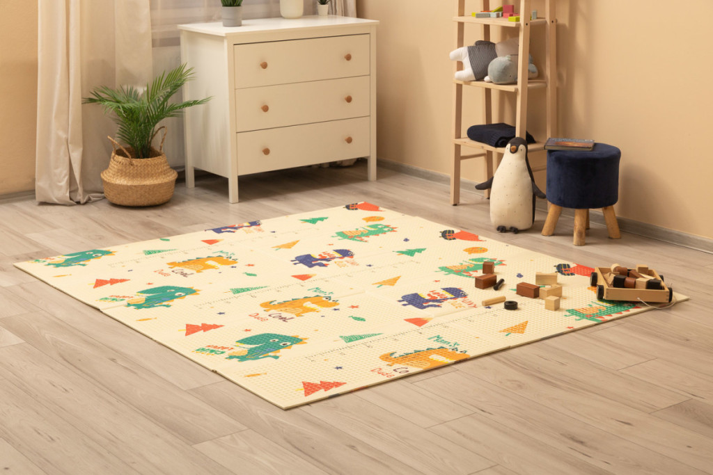 Puha összehajtható játszószőnyeg a baba biztonságos játékához.