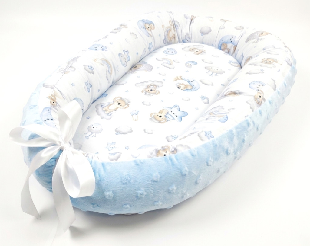 Scamp Minky-vászon babafészek - Light Blue Bear
