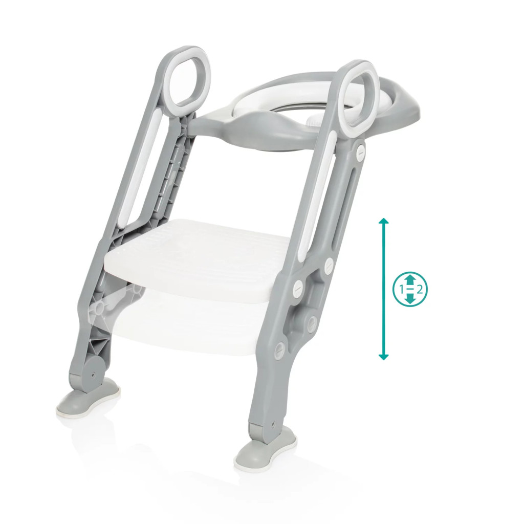 A lépcsők 1 éves kortól alkalmasak gyermekek számára, és az állítható magasságnak köszönhetően együtt nőnek gyermekével, amíg már nincs rájuk szükség. A robusztus felépítés biztosítja, hogy gyermeke biztonságban érezze magát mászás és ülés közben. A lábak speciális csúszásmentes felülettel rendelkeznek, amely stabilitást és tartást biztosít. A lépcsőn puha és kényelmes ülés is található, amely helyettesíti a szokásos WC-t. Az ülés anatómiai formája a megemelt hátoldallal együtt tökéletes-megakadályozza a nem kívánt szennyeződést.