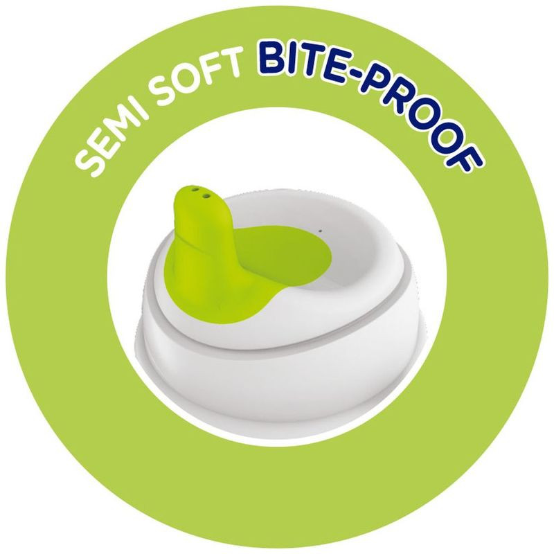 Rágásbiztos csőr TPE anyagból, mely hőre lágyuló, kellemes tapintású és kopásálló anyag.