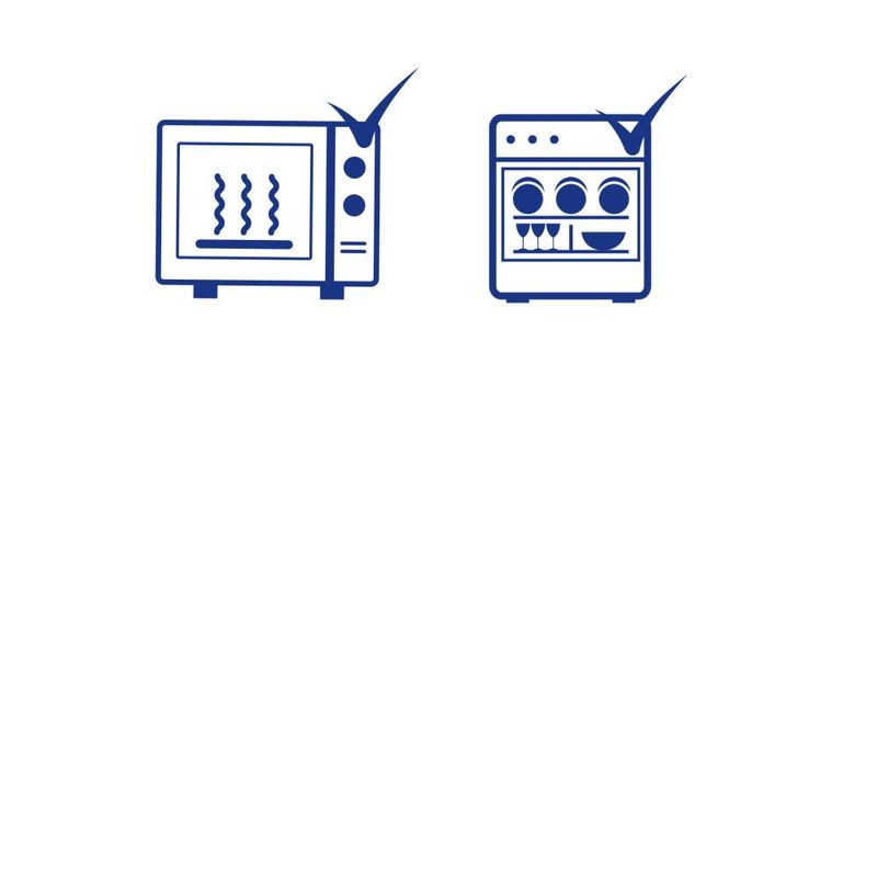 Étel, ital melegítés: mikrohullámú sütőben max 3 percig és max 800 W-on melegíthető benne étel/ital.