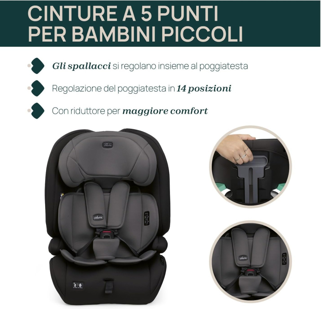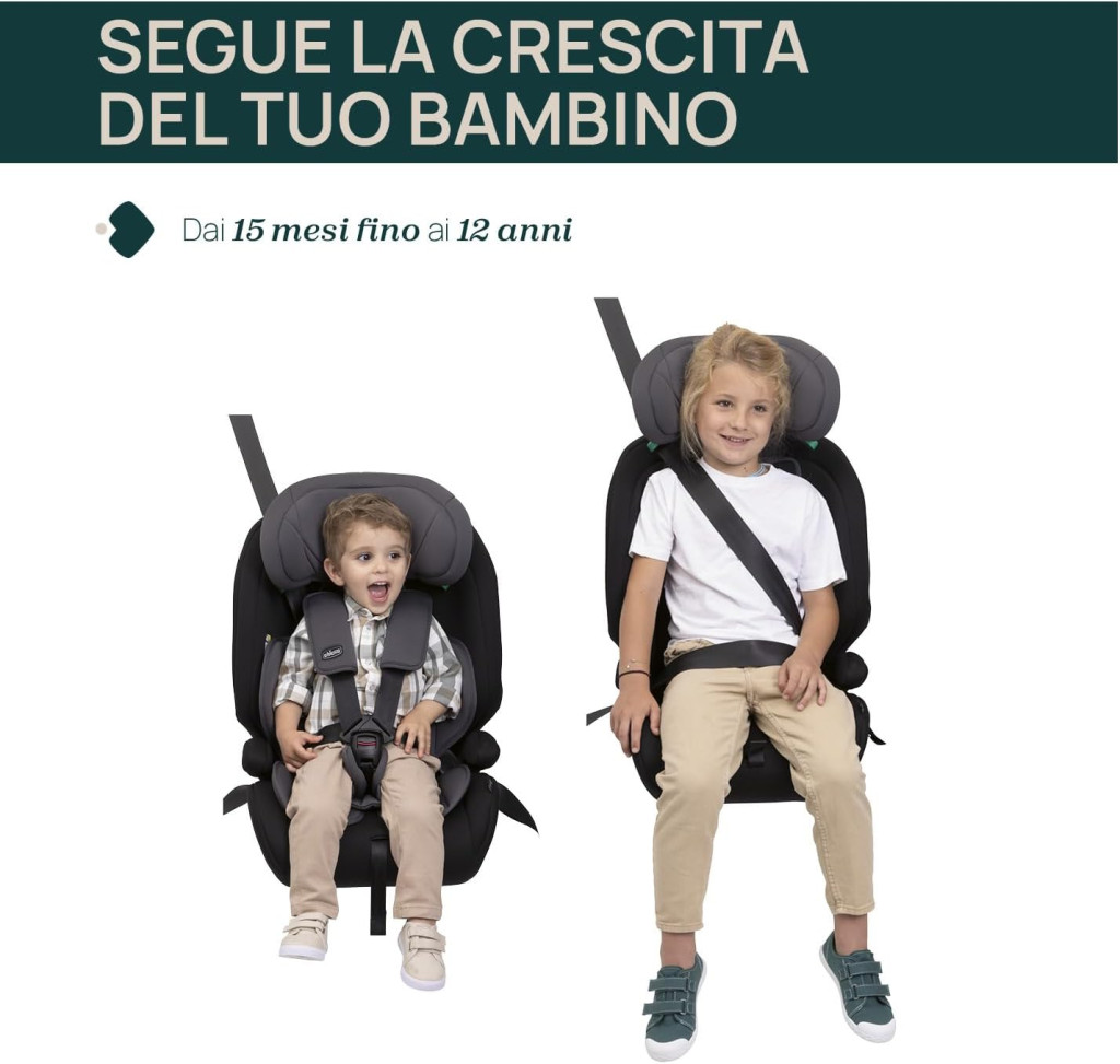 Chicco Gro-Up biztonsági autósülés I-Size 76-150 cm Isofix-nélküli autókba - Pure Black